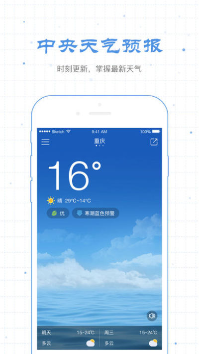 中央天气预报还是蛮权威的专业机构,全国各地的都有,甚至海外的也有,全新的交互设计,更简洁,更流畅,更有爱。更专业更生动的空气质量指数PM2.5,实时播报。