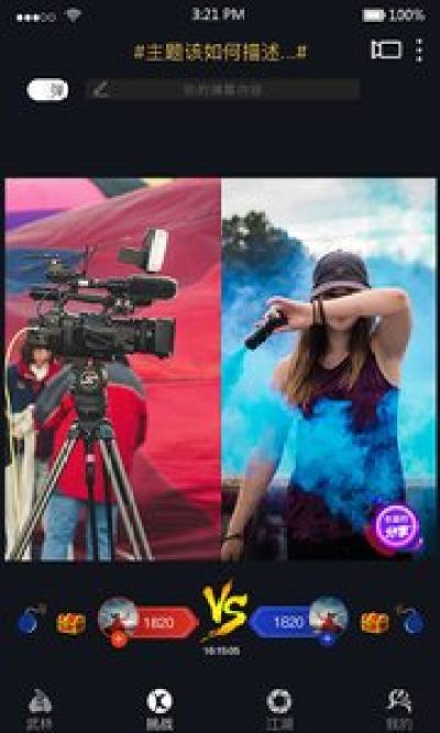 3、武林模块:支持用户在主题氛围下进行视频创作PK,在主题下发布个人秀场视频创作来挑战其他用户,观众用户可以为喜爱的视频点赞支持