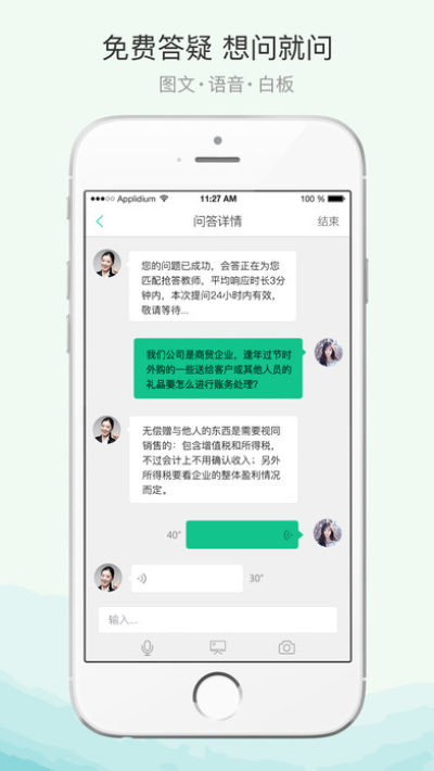 会答可使用语音和文字两种提问方式,在提问过程中可使用语音、文字、图片、白板等交流方式,多方式沟通交流,让您的问题得到详细、准确、生动的解答,提问后,添加标签,为您即时匹配会计导师。