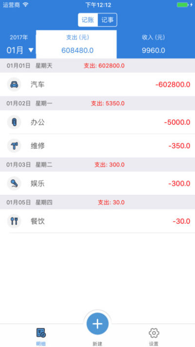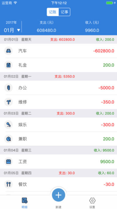1.非常简单的操作流程, 几秒之内就可以新建一个账单或者一条备忘录