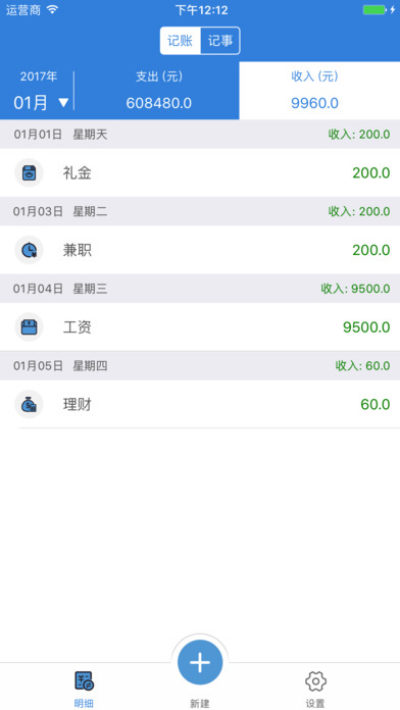 1.非常简单的操作流程, 几秒之内就可以新建一个账单或者一条备忘录