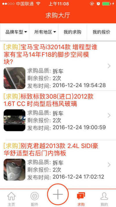 陈田拆车件安卓版为广大需要汽配零件的用户打造的手机app,用户可以在求购大厅根据汽车品牌在线发布自己需要的零件信息,作为一个汽配交易平台更加方便实用,需要的用户快来下载陈田拆车件app试试吧