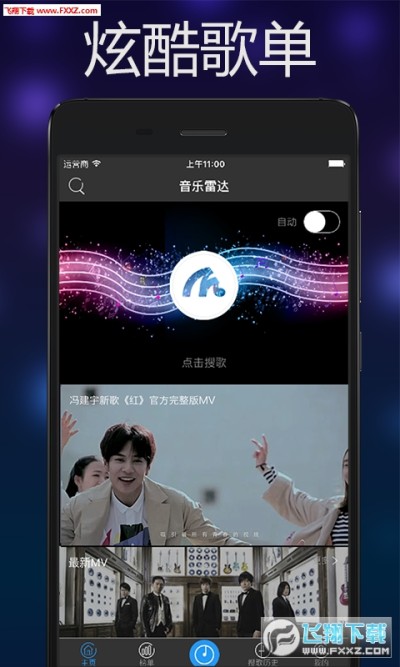 听歌识曲:录制一段周围正在播放的歌曲、音乐、铃声,MV,瞬间搜索识别歌名