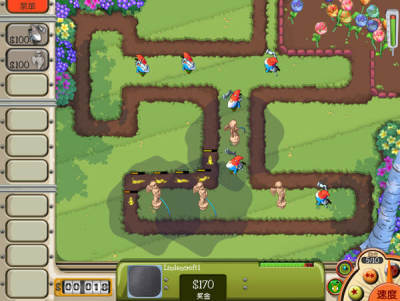 游戏的规则和塔防游戏类似,最初只有100元金币,可以购买一个最低级的火枪手来防御花园,然后通过防御塔来消灭害虫,获得金钱,从而购买更多的防御塔!地图的重点就是防御塔放置的地点非常重要,要尽可能的把打击面扩大,使得可以消灭更多的害虫!在这个游戏中可以自定义游戏的速度,而且有些放置了的防御塔可以被移动到其他地点!