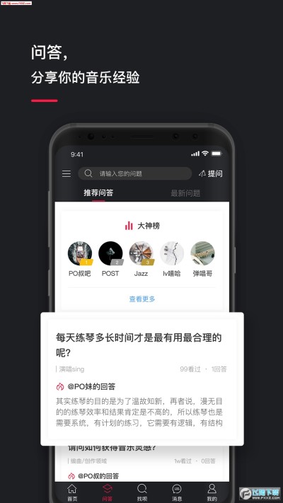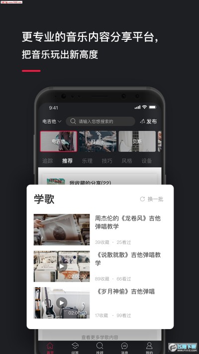 全新POST音乐是一款专业、有趣的音乐知识分享平台。App内拥有海量的音乐知识,全面覆盖十大领域:演唱、吉他、贝斯、尤克里里、打击乐、音乐制作、键盘、打击乐、音乐创作、电子乐。从不同的维度细分知识点:乐理、技巧、玩风格、找设备、学歌。