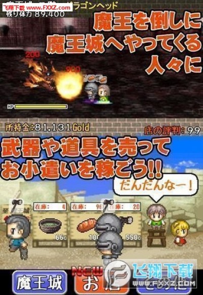 在魔王城大门前开店吧!手游安卓版游戏中玩家需要在魔王的世界里开一家店铺,不为了赚取更多的利润,而是为了给勇士们提供精致的武器装备,帮助他们打败大魔王哦。现在你是一个店主,你主要卖一些装备道具,让勇者们拥有足够的装备,这样就能与魔王对抗!为了在魔王讨伐全国各地的人们来到村子的样子,对村里没有特别的变化,人们过门不入村向着魔王城方向,简单地被打败了,那样的情景的村的少年思索一条计策了,“在魔王城的前面拿出一个地摊做零花吧!”