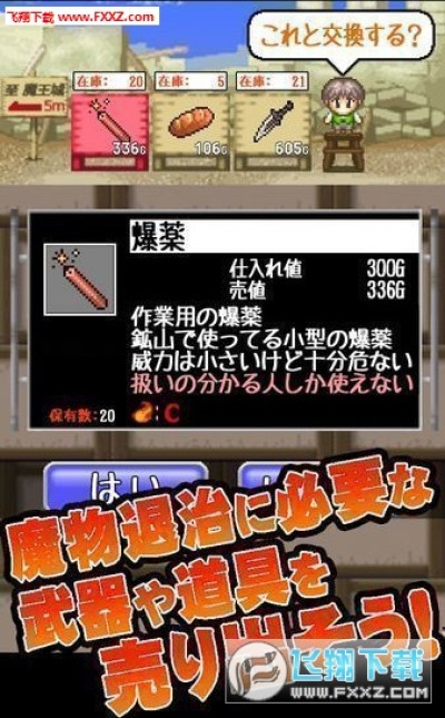 3.根据勇者的需求贩卖道具,最终帮助勇者们打倒魔王!感兴趣的话就快来下载吧!