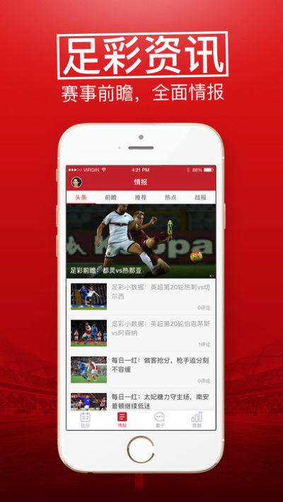 小红单app是懂球帝官方推出的手机应用,是针对足球打造的足彩应用,小红单app提供专业的足球资讯还有足球评估,用户可以根据这些信息来选择球队,另外小红单app还有足球圈,可以跟感兴趣的朋友一起探讨聊天哦,感兴趣的朋友快来下载吧!
