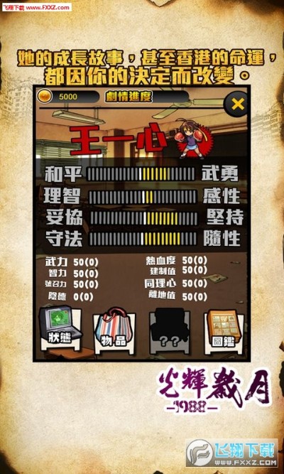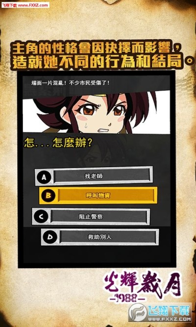 《光辉岁月1988》是一款卡通风格的角色扮演手游游戏中玩家将进入了一个架空的香港里,和各种伙伴们进行 冒险,游戏采用了多结局的设定,玩家可以通过不同的养成属性来进入不同的结局,喜欢的玩家快来下载吧!