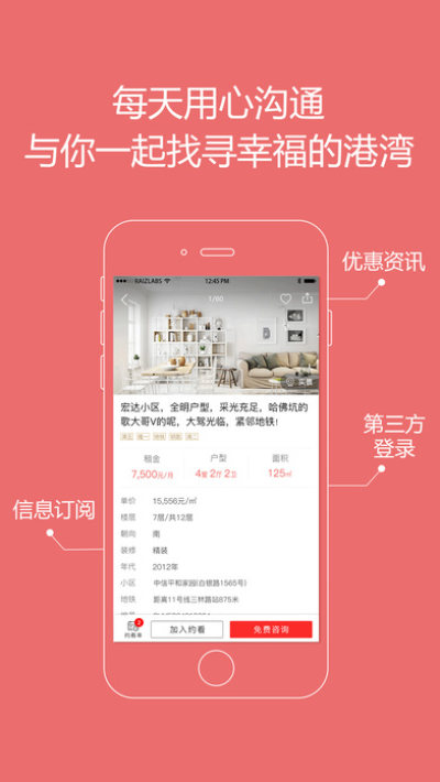 *移动场景 房源多多一键查看,列表搜房,地图找房很方便