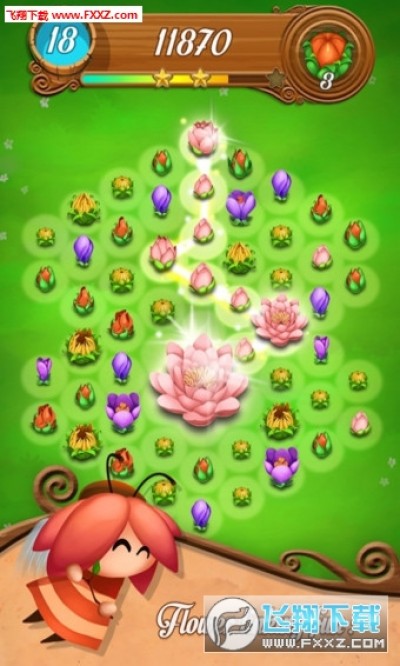 绽放花朵传奇手游最新安卓版游戏中玩家需要清除仪花圃,让更多的花蕾成功绽放!游戏采用了全新的六网格排列,你只需用手指将同色花儿连在一起,便能够消除绽放出美丽的鲜花来,有时还会看到勤劳的小蜜蜂来回飞过,为大家收集花蜜哟!提防好杂草的入侵,让这儿充满花香吧,将相同颜色的 3 个或更多花蕾连在一起,使花朵蓬勃生长。你所触发的鲜花绽放连锁反应将使你目不暇接。连锁反应一旦开始,你将获得巨大惊喜!