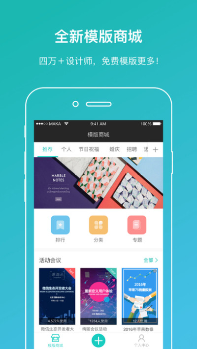 MAKA作为国内首家H5场景制作及广告创意推广平台,其不断升级的强大功能既可助力企业创作出专业级广告宣传片,又能帮助个人用户用电子音乐相册记录每个值得分享的瞬间。自上线以来,至今已积累1000万+注册用户,每月超过5亿人次通过MAKA阅读H5图文交互信息。公众广泛的认可得益于用心工作的MAKA人不断根据用户反馈,完善自身产品。现模板商店已涵盖婚礼喜帖、邀请函,活动促销推广,简历招聘,动态节日贺卡制作,电子音乐相册,创意杂志海报等多个行业种类。