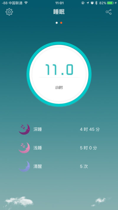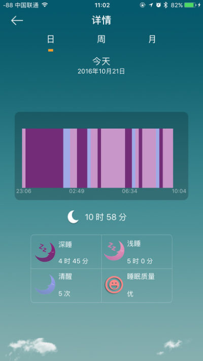 2、睡眠监测,监测每晚睡眠质量,深睡与浅睡时间