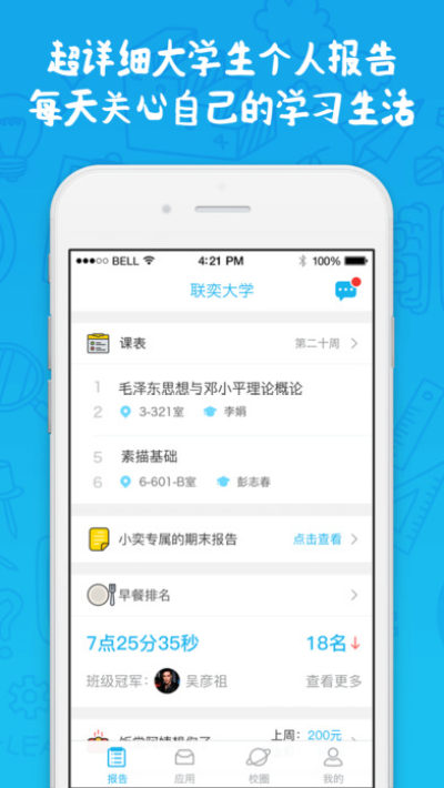 奕报告是一款基于移动校园场景的大数据工具型应用。