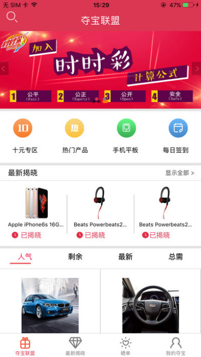 夺宝购app是一个比较受大众欢迎的一元购物平台,你只要花费一元钱就有机会购得各种价格昂贵的商品,整个交易过程都是公开,确保公平公正,不会有任何的猫腻,平时喜欢玩一元购物的朋友不妨来看看,相信绝对会令你满意的!