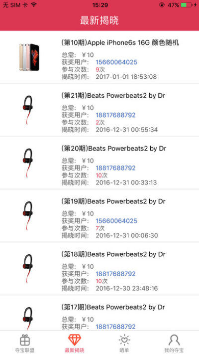 第2步:参与成功后,您会获得相应数量的参与号码。当该商品的参与人次数达到总需人次后,就会进入待开奖状态,等待开奖。