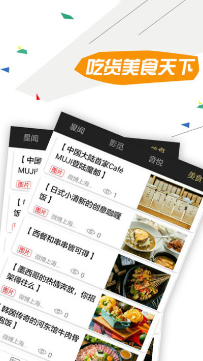 星发布:目前分为星闻、影觅、音悦、美食四个版块,以图文、图片、视频等方式展现明星的动态。