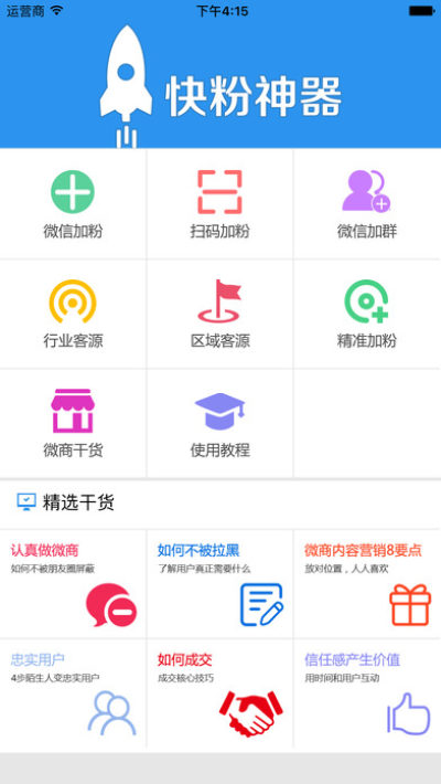 对于做微商的朋友来说,粉丝数量比什么重要,只有让自己的微信号有了充足的活跃粉丝后,这样才能将自己产品推销出去,下面给大家推荐的这款快粉神器app就是一个微信加粉神器,它可以帮助你轻松获取大量的活跃粉,对于那些僵死粉会全部清除掉,有需要的朋友可以到这里来免费下载使用!