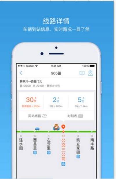 车来了小程序包含线路查询:输入线路编号,显示该线路所有运行车辆的实时位置与到离站信息,可以自由选择候车地点,一键切换行车方向输入站点名称,显示周边所有经过该站点的线路实时到站信息。自动定位周边的站点,按照距离远近排序,分列表和地图的两
