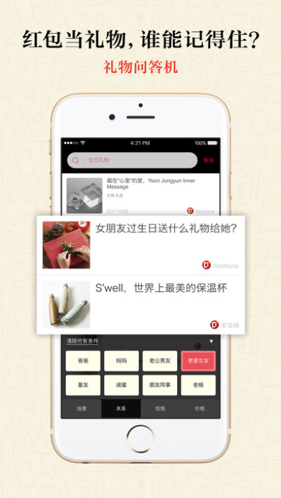 礼物挑选神器app为大家提供了一个便捷送礼收礼的礼单工具。许愿树可以方便的记录大家想买的东西,各种心愿并分享给好友知道。好友功能,能方便的知道你的朋友们想要