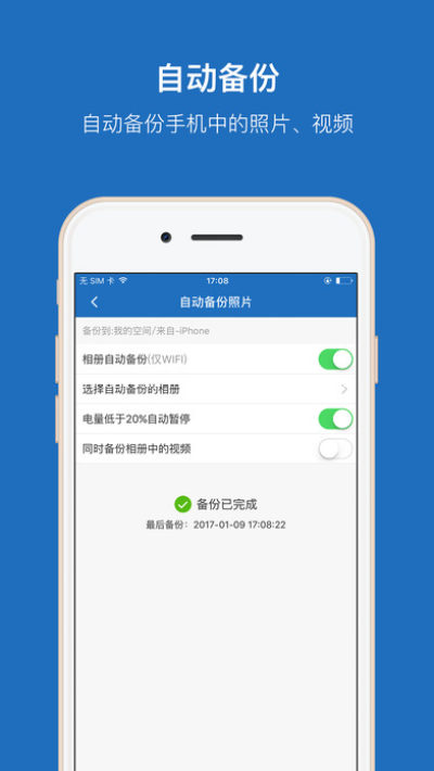 手机中的照片、视频可自动备份至云盘,为手机腾出更多空间。