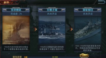 在科研中心中,我们能直观看到海上科技的变化,游戏中共分为4个科技时代,分别是铁甲舰队时代、无畏之海时代、海军假日时代和激战海空时代。在铁甲舰队时代,列强海军发展处于一个缓慢的瓶颈时期,而1906年无畏舰的诞生使海军发展迎来了大舰巨炮时代。此后在海军假日时代,列强各国等待机会寻求新的突破。直到激战海空时代到来,航母母舰取代战列舰成为新的海上霸主。