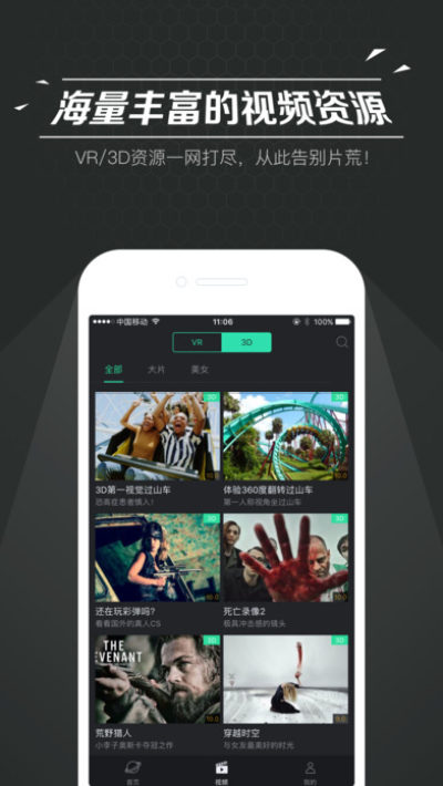 【海量视频资源】拥有海量VR电影,360°全景视频播放,独有加载技术,超IMAX的影院体验,打造您的私人专属影院。