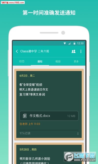 通过Class通app,老师创建班级后,学生和家长输入班级码,即刻加入班级。想知道谁没收到通知吗?随时确认未读成员,一键点击再次发送。班上的同学都在这里,随时上传自己的文字、照片、视频,与同学们一起分享。“友好班级”功能,可以和全国任意一个班级成为友好班级互动与交流。非常方便快捷,别错过哦。