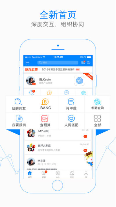 邦邦社区是专为企业与个人打造的永久免费协同办公平台,集多样化即时通讯、高效团队协作功能、便捷的办公应用、全方位金融与生活服务为一体,帮助企业插上移动互联网的翅膀,减少管理成本、提高工作效率,并从工作出发,围绕企业及员工个人的金融与生活需求,构建最优质的生态服务体系。