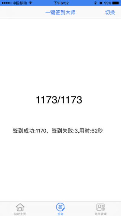 4.智能的多账号管理,每个账号可签到贴吧无限制,添加账号无限制,一键签多账号。