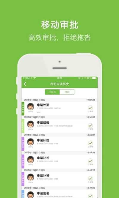 6、拥有审批权限的用户可得到待签核业务通知并进行手机签核。
