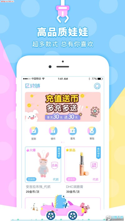 区块链抓娃娃机里面娃娃、玩具、日用品、彩妆等等娃娃机内一切皆有可能。奖品每日换新,玩法层出不穷,这才是抓娃娃的正确打开方式。