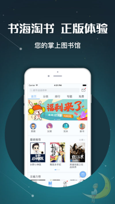 1. 覆盖超人气的网络小说,涵盖都市言情、霸道总裁、玄幻修仙、青春校园、历史军事、官场权势、职场竞技、耽美同人、惊悚悬疑和名人传记等类型;