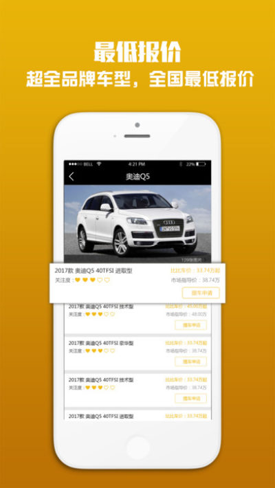 比比车app是陆陆科技致力于让用户以全国最低价购买心水爱车的又一得力之作。比比车平均每分钟4320万次更新4s报价,全国汽车比价,环比全国25000家4s店,全国唯一真实实时报价平台,从此买车不多花一分冤枉钱。比比车为你实力提供最新最全最低的的汽车报价大全,更有最优的购车方案买到心仪好车。