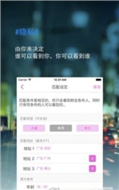 单男、单女聚会交友必备软件。拒绝造假用户数据、机器人,哪怕直接显示您没有匹配合适的会员;但不要紧,有匹配成功的用户我们会主动推送给您;