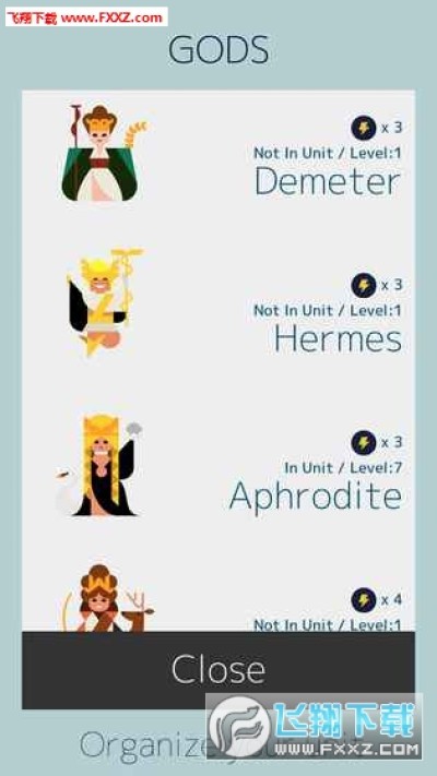 游戏中玩家还可以通过融合三个或以上宝箱来解锁希腊诸神辅助进行游戏。不同的神具有不同的属性和技能。