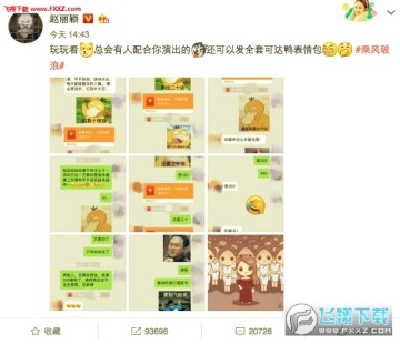 这款微信可达鸭要红包表情包其实是由赵丽颖带火的,她的朋友圈有人使用这款表情包来跟她要红包,完全是妥妥的啊!