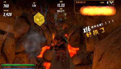爆裂冲击被定义为一款动作游戏,其实这是一款速度类的酷跑游戏。玩家控制的壮汉可以冲刺撞碎岩石也可以一下跳很远来躲开撞不动的东西。吃分数,躲障碍就是游戏的精髓,游戏的撞击感强烈,速度感十足,当后来速度越来越快时,手忙脚乱也是免不了的。