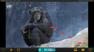 导演取景器能够显示你拍片使用的摄影机的使用的镜头、画幅比大小。因为各种业务不一样,有时候使用比如 ARRI ALEXA、RED EPIC 这类高大上的专业摄影机,有时候也会用 5D3、BMCC 等低成本机器,所以堪景的时候就能知道现场大概需要哪些镜头、机位、并且对前期的道具、美术做好准备。