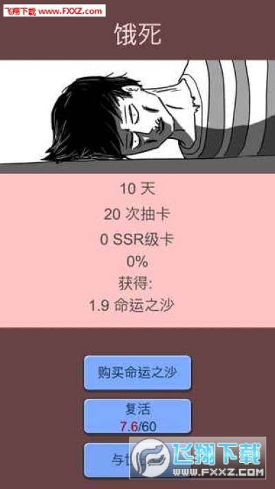 抽卡人生是一款卡牌策略游戏,游戏的玩法非常有创意,玩家需要在365天中抽中100张SSR卡,才能生存下去,但是玩家需要注意的是在这里也需要食物、水、交易、命运、看病等多种元素都影响你的命运与自己的发展。