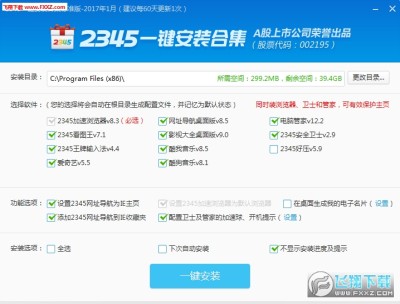 2345一键安装合集标准版是为了方便广大技术员快捷地推广2345产品、。 集成了2345网址导航、2345加速浏览器、2345安全卫士、腾讯电脑管家、2345好压、2345看图王、酷我音乐、爱奇艺等。所有软件可以根据您的需求,自由勾选,一键安装!