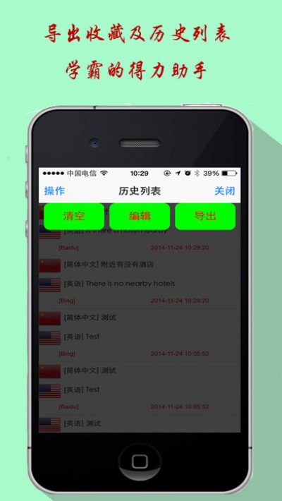 - 可以实现对喜欢的翻译结果加注星标,同样在离线状态下也可以快速访问