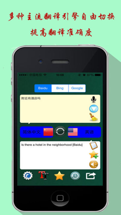 - 智能切换翻译引擎,保证您能在最短时间内得到翻译结果