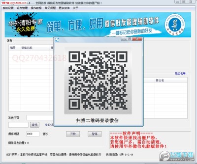 《华外微信清粉专家免费电脑版》这是一款专业的帮助网友清除朋友圈死尸的软件。该软件使用简单,功能强大,能够帮助用户清理那些没有活跃度的粉丝帐号,清理出空间,以便添加新的粉丝,使用简单,一键清理,让你省心又省力。免费版的自动检测并且标记出删除你的好友,电脑上面使用,不封号,安全,终身更新。