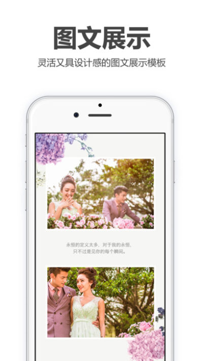 2.丰富的图文展示:灵活又具设计感的图文展示模块,为各种尺寸的照片设计