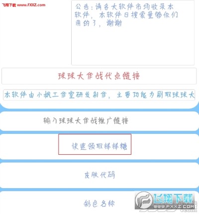 球球刷棒棒糖是由小枫工作室研发的游戏辅助工具,主要功能为球球大作战代点链接,皮肤,以及彩色昵称,软件界面整洁,简单好用