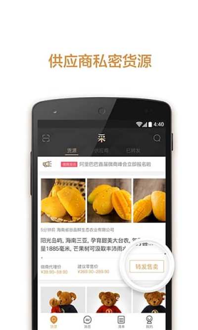 采源宝是阿里巴巴为微商提供的一款集看货、铺货、订货于一体的便捷工具。背靠1688百万商家的优质货源和一件代发服务,广大微商可免除一切进货和发货烦恼,专注于社交与社会化营销卖货,尽享高额利润。