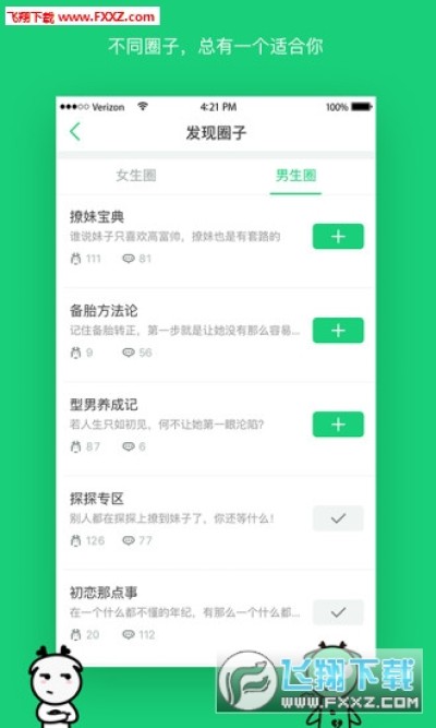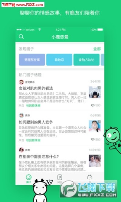 2.【圈子】分享恋爱故事,吐槽遇到的奇葩EX,有撩妹、撩汉知识讨论,你想得到,想不到的情感话题这里都有,让你心中有如小鹿乱撞,就问你怕不怕!