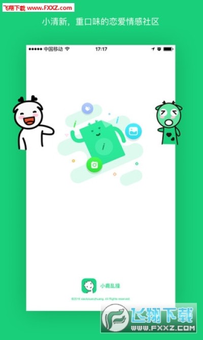 小鹿乱撞APP图标由绿色背景和一个脸颊绯红的卡通小鹿组成,形象的传达出了男女之间怦然心动的感觉。打开应用后,主界面也采用绿色作为主色调,尽显小清新风格,同时做为一个情感社区,给用户传达着健康、积极的情绪体验。
