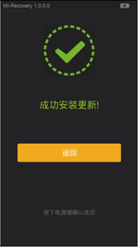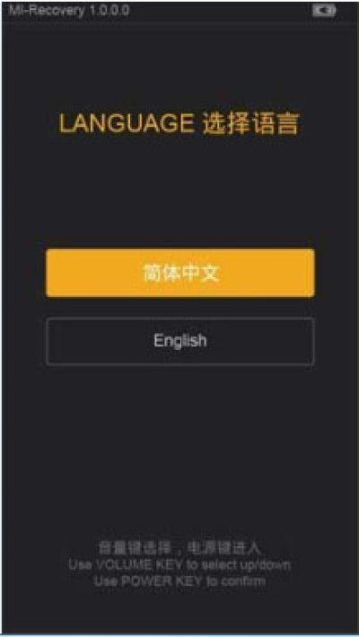 2:手机进入recovery(些时的recovery一定要是方的recovery,因为官方的recovery才能刷小米官方的刷机包),然后手机在关机状态下,同时按住手机的音量上键 + 电源键(两键同时按住),屏幕亮起松开按键即可进入。